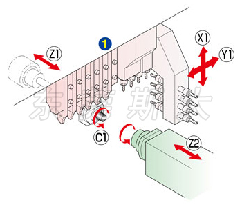 | 四、斯大走心機SB-16RtypeC在標準規格橫向鉆孔單元4軸的基礎上,可配備橫向鉆孔單元5軸型、可交換式橫向鉆孔單元5軸型/5軸高速型4種刀架臺,而可交換式橫向鉆孔單元5軸中的右側3軸,采用模塊化設計配備豐富的刀具單元,可根據工件需要自由安裝多種可交換式工具,展開多樣的復合加工。 |